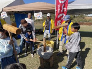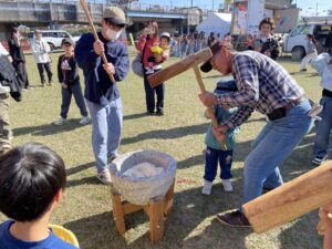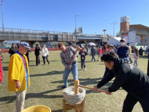 またちびっこ餅つき大会も実施し、つきたてのお餅を来場者へ振舞い大盛況でした。