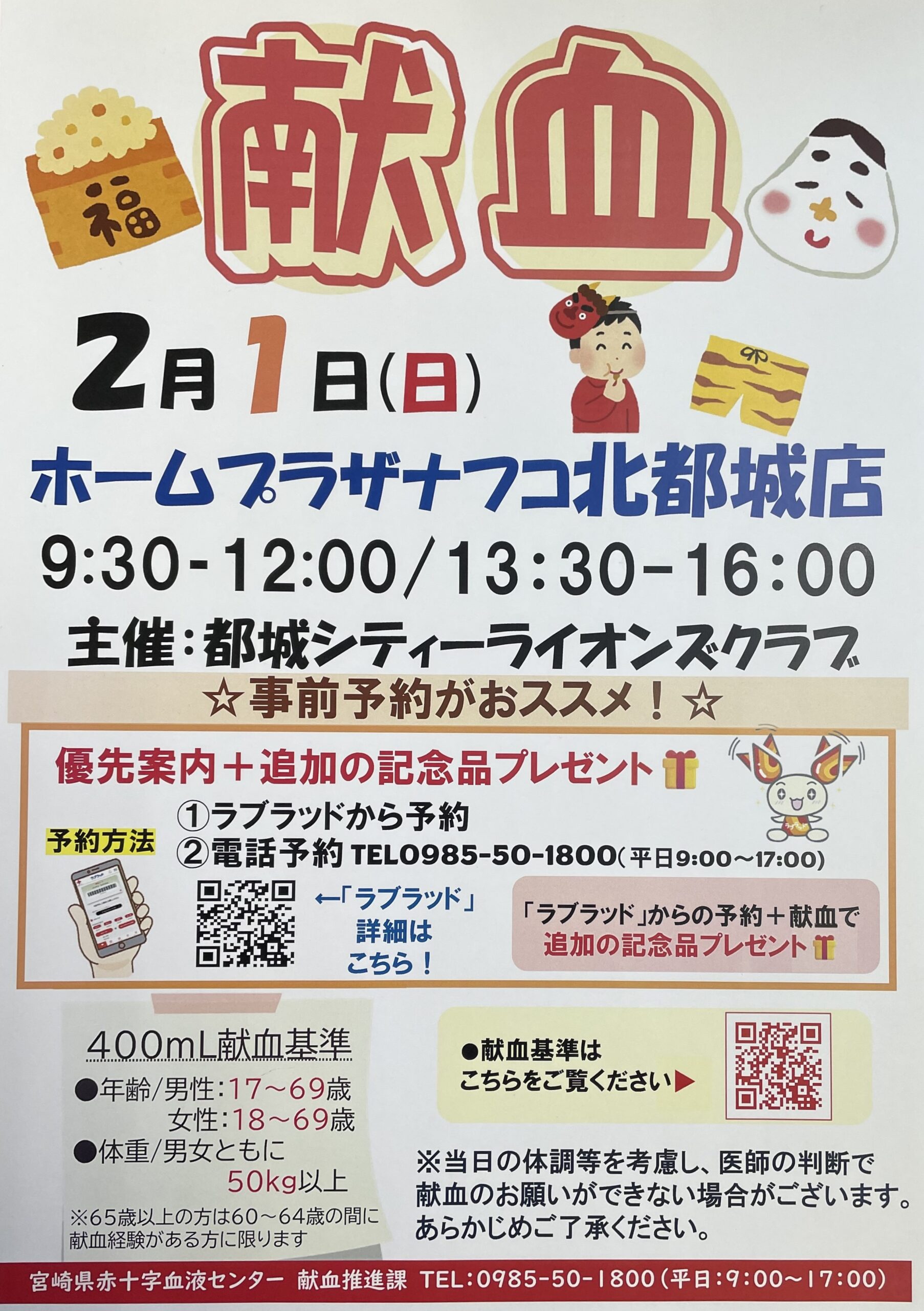 カレンダーに戻る 献血活動 2月 1日 @ 9:30 AM - 4:00 PM イベント ナビゲーション « ニコニコフェスティバル 2026年2月1日(日)ホームプラザナフコ北都城店の駐車場にて献血活動を行います。皆さまのご協力を宜しくお願い致します。 カレンダーに追加 Google カレンダー iCalendar Outlook 365 Outlook Live 詳細 日付: 2月 1日 時間: 9:30 AM - 4:00 PM イベントカテゴリー: 献血 主催者 都城シティーライオンズクラブ 会場 ナフコ北都城店
